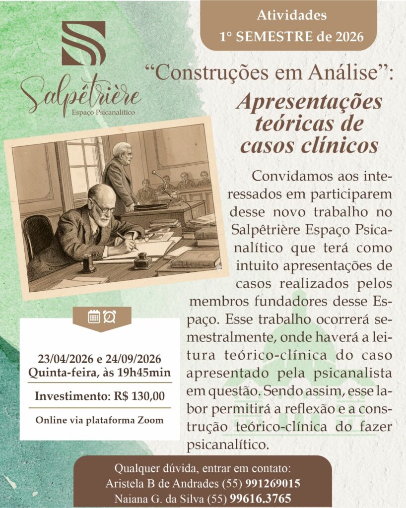 • Construções em Análise: Apresentações teóricas de casos clínicos – Apresentação de Aristela Barcellos de Andrades – 23/04/2026